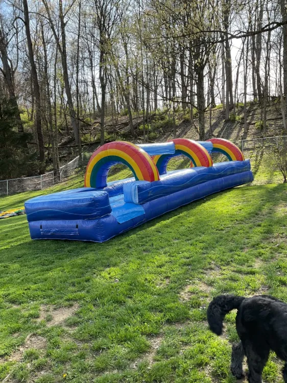 Our main service brings the 30' Blue Marble Inflatable Slip and Splash Slide in your delivery area ensuring a hassle-free experience from start to finish. We pride ourselves on prompt delivery professional setup and unparalleled customer service so you can enjoy your event without any worries.